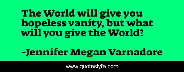 "Jennifer Megan Varnadore Quotes." Quoteslyfe.com, 2026. Wed. 14 Jan. 2026. <https://www.quoteslyfe.com/quote/The-World-will-give-you-hopeless-vanity-281105>.