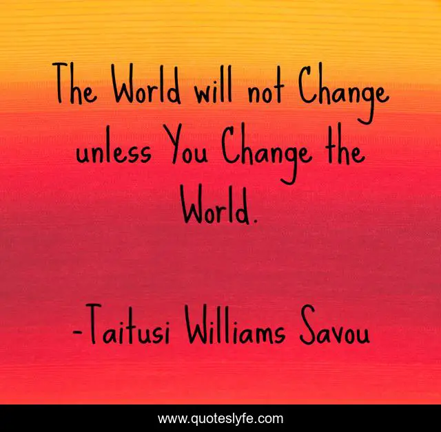 "Taitusi Williams Savou Quotes." Quoteslyfe.com, 2025. Fri. 05 Dec. 2025. <https://www.quoteslyfe.com/quote/The-World-will-not-Change-unless-You-55032>.