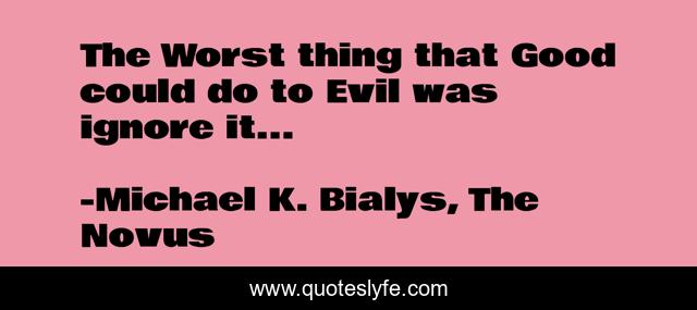 This page presents the quote "The Worst thing that Good could do to Evil was ignore it...". Author of this quote is Michael K. Bialys, The Novus. This quote is about teen-read, ya, fiction, fantasy, bialys, young-adult,.