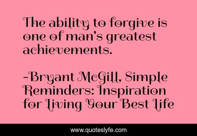 This page presents the quote "The ability to forgive is one of man's greatest achievements.". Author of this quote is Bryant McGill, Simple Reminders: Inspiration for Living Your Best Life. This quote is about achievements, abilities, forgiveness, greatness,.