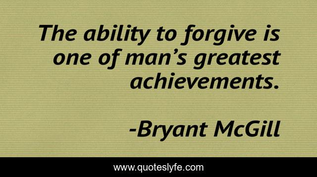 This page presents the quote "The ability to forgive is one of man’s greatest achievements.". Author of this quote is Bryant McGill. This quote is about forgiving, forgiveness, forgive, humanity,.