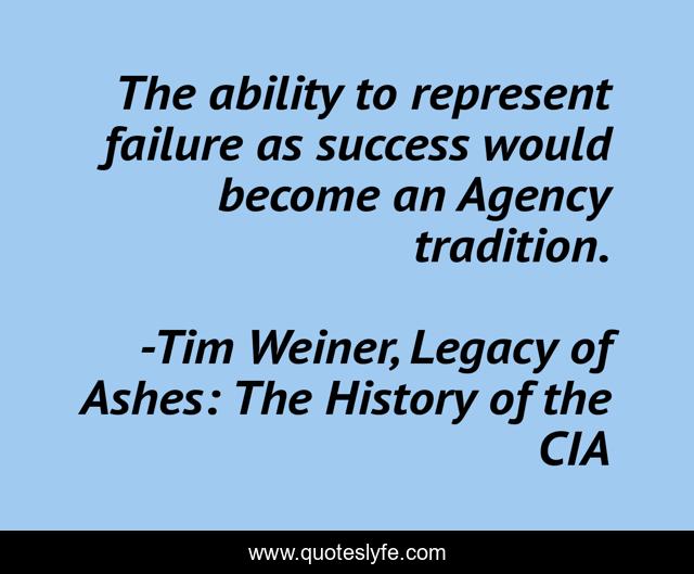 "Tim Weiner, Legacy of Ashes: The History of the CIA Quotes." Quoteslyfe.com, 2025. Fri. 05 Dec. 2025. <https://www.quoteslyfe.com/quote/The-ability-to-represent-failure-as-success-237507>.