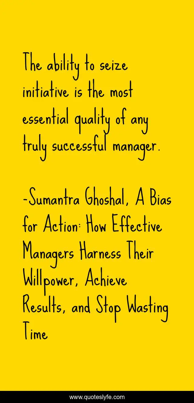 "Sumantra Ghoshal, A Bias for Action: How Effective Managers Harness Their Willpower, Achieve Results, and Stop Wasting Time Quotes." Quoteslyfe.com, 2025. Fri. 05 Dec. 2025. <https://www.quoteslyfe.com/quote/The-ability-to-seize-initiative-is-the-243749>.