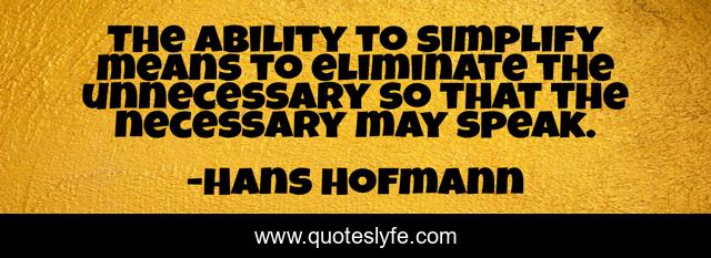 This page presents the quote "The ability to simplify means to eliminate the unnecessary so that the necessary may speak.". Author of this quote is Hans Hofmann. .