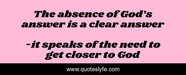 This page presents the quote "The absence of God’s answer is a clear answer". Author of this quote is it speaks of the need to get closer to God. .