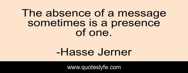 This page presents the quote "The absence of a message sometimes is a presence of one.". Author of this quote is Hasse Jerner. This quote is about love, business, missing, messages, missing-someone, message, affection,.