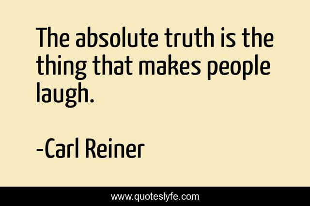 This page presents the quote "The absolute truth is the thing that makes people laugh.". Author of this quote is Carl Reiner. This quote is about truth is, laugh, people,.
