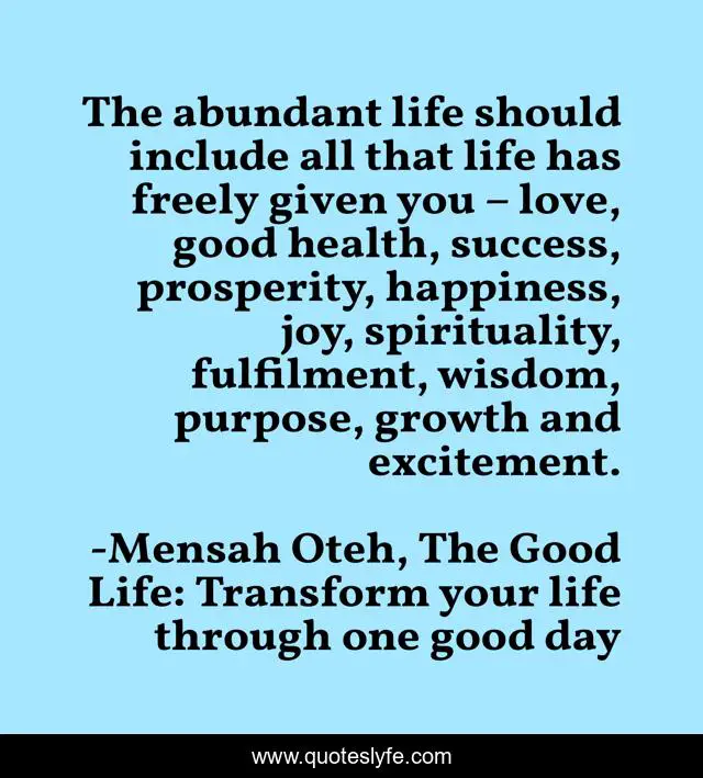 "Mensah Oteh, The Good Life: Transform your life through one good day Quotes." Quoteslyfe.com, 2025. Fri. 05 Dec. 2025. <https://www.quoteslyfe.com/quote/The-abundant-life-should-include-all-that-15714>.