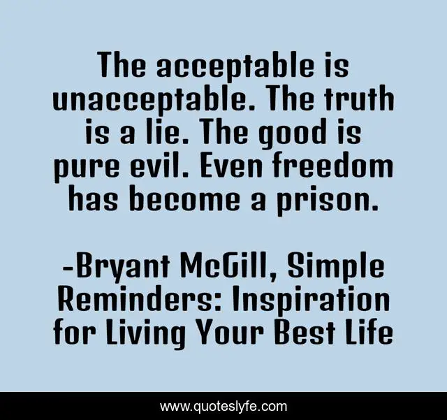"Bryant McGill, Simple Reminders: Inspiration for Living Your Best Life Quotes." Quoteslyfe.com, 2025. Fri. 05 Dec. 2025. <https://www.quoteslyfe.com/quote/The-acceptable-is-unacceptable-The-truth-is-167617>.