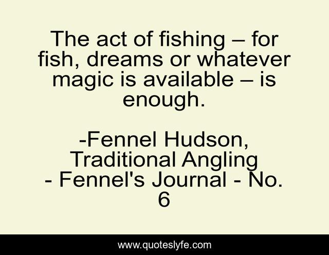 "Fennel Hudson, Traditional Angling - Fennel's Journal - No. 6 Quotes." Quoteslyfe.com, 2025. Tue. 09 Dec. 2025. <https://www.quoteslyfe.com/quote/The-act-of-fishing-for-fish-dreams-53545>.