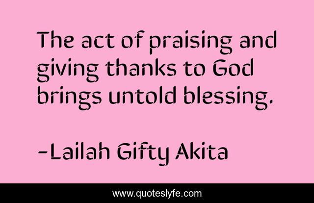 This page presents the quote "The act of praising and giving thanks to God brings untold blessing.". Author of this quote is Lailah Gifty Akita. This quote is about gratitude, thanksgiving, praise,.