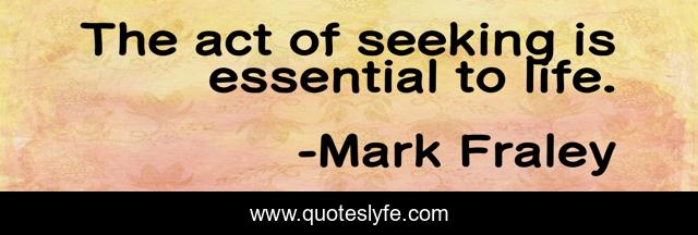 This page presents the quote "The act of seeking is essential to life.". Author of this quote is Mark Fraley. This quote is about spiritual-growth, inspirational, enthusiasm,.