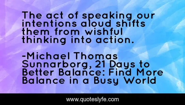 "Michael Thomas Sunnarborg, 21 Days to Better Balance: Find More Balance in a Busy World Quotes." Quoteslyfe.com, 2025. Sat. 06 Dec. 2025. <https://www.quoteslyfe.com/quote/The-act-of-speaking-our-intentions-aloud-157688>.