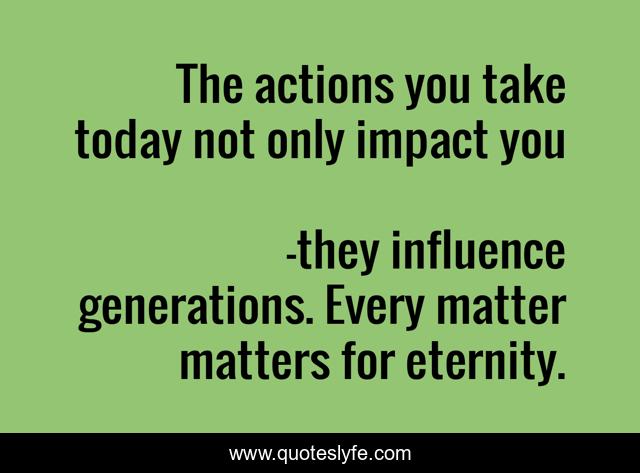 "they influence generations. Every matter matters for eternity. Quotes." Quoteslyfe.com, 2025. Fri. 05 Dec. 2025. <https://www.quoteslyfe.com/quote/The-actions-you-take-today-not-only-258950>.
