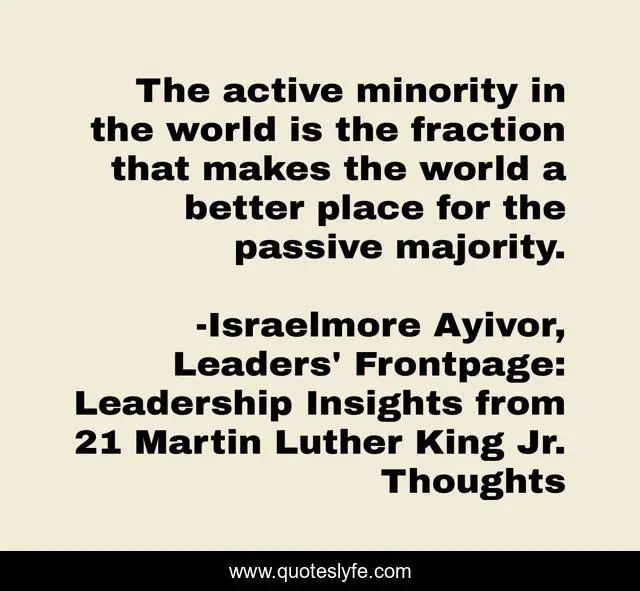 "Israelmore Ayivor, Leaders' Frontpage: Leadership Insights from 21 Martin Luther King Jr. Thoughts Quotes." Quoteslyfe.com, 2025. Sun. 07 Dec. 2025. <https://www.quoteslyfe.com/quote/The-active-minority-in-the-world-is-64194>.