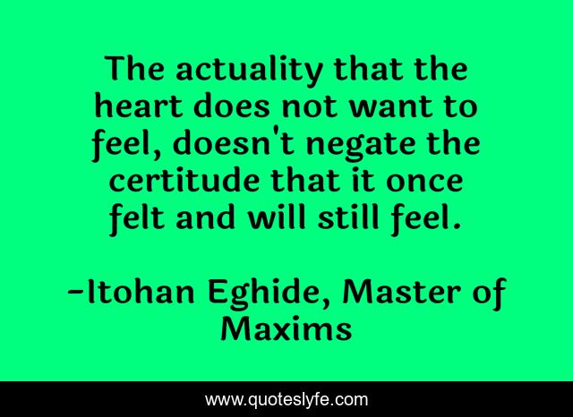 "Itohan Eghide, Master of Maxims Quotes." Quoteslyfe.com, 2025. Sun. 07 Dec. 2025. <https://www.quoteslyfe.com/quote/The-actuality-that-the-heart-does-not-38312>.