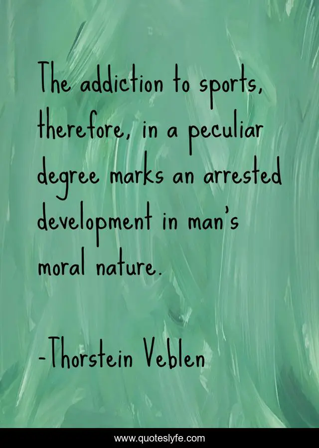 This page presents the quote "The addiction to sports, therefore, in a peculiar degree marks an arrested development in man's moral nature.". Author of this quote is Thorstein Veblen. This quote is about nature, moral, man,.