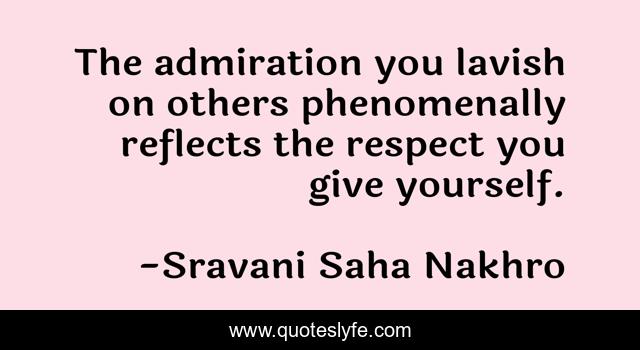 This page presents the quote "The admiration you lavish on others phenomenally reflects the respect you give yourself.". Author of this quote is Sravani Saha Nakhro. .