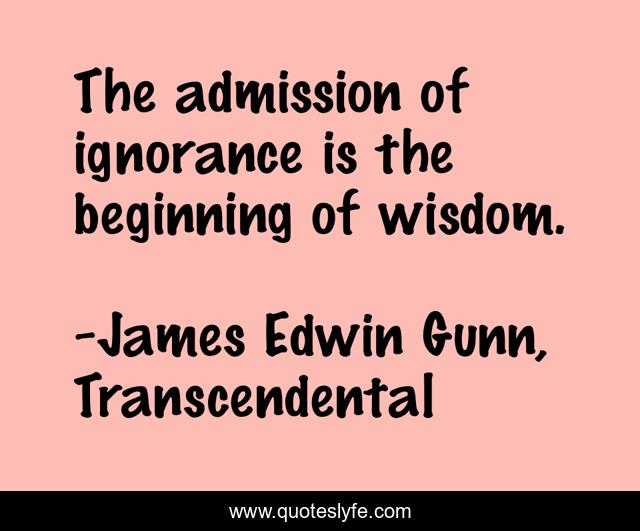 This page presents the quote "The admission of ignorance is the beginning of wisdom.". Author of this quote is James Edwin Gunn, Transcendental. This quote is about ignorance, wisdom,.