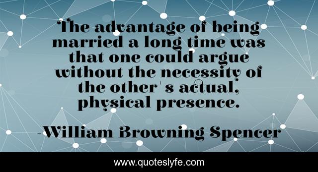 This page presents the quote "The advantage of being married a long time was that one could argue without the necessity of the other's actual, physical presence.". Author of this quote is William Browning Spencer. .