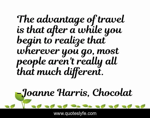 "Joanne Harris, Chocolat Quotes." Quoteslyfe.com, 2025. Sun. 07 Dec. 2025. <https://www.quoteslyfe.com/quote/The-advantage-of-travel-is-that-after-137156>.
