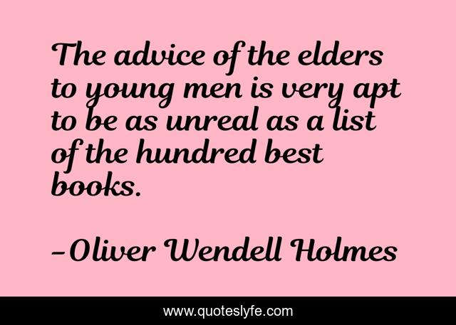 "Oliver Wendell Holmes Quotes." Quoteslyfe.com, 2025. Sun. 07 Dec. 2025. <https://www.quoteslyfe.com/quote/The-advice-of-the-elders-to-young-259921>.