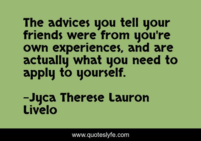 This page presents the quote "The advices you tell your friends were from you're own experiences, and are actually what you need to apply to yourself.". Author of this quote is Jyca Therese Lauron Livelo. .