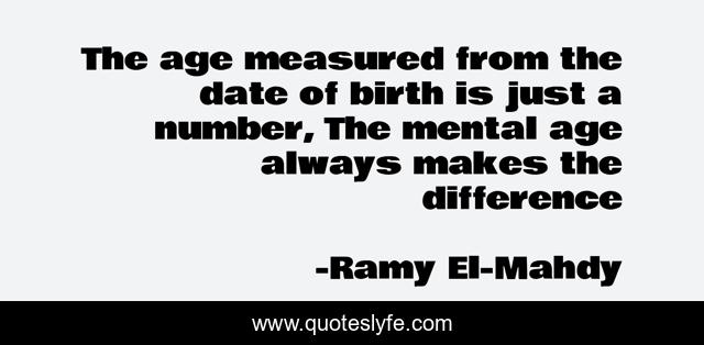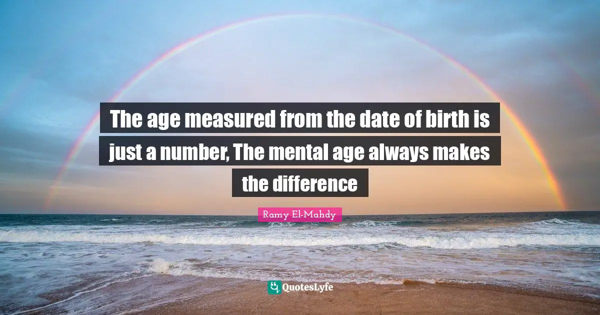 This page presents the quote "The age measured from the date of birth is just a number, The mental age always makes the difference". Author of this quote is Ramy El-Mahdy. This quote is about ramy-elmahdy, mental-age, thinking, inspirational, enthusiasm, d-o-b,.