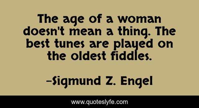 This page presents the quote "The age of a woman doesn't mean a thing. The best tunes are played on the oldest fiddles.". Author of this quote is Sigmund Z. Engel. This quote is about age, birthdays,.