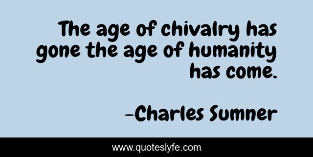 This page presents the quote "The age of chivalry has gone the age of humanity has come.". Author of this quote is Charles Sumner. .