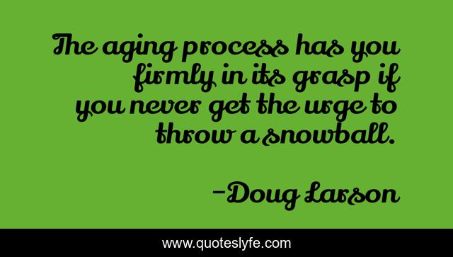 This page presents the quote "The aging process has you firmly in its grasp if you never get the urge to throw a snowball.". Author of this quote is Doug Larson. This quote is about process, aging,.