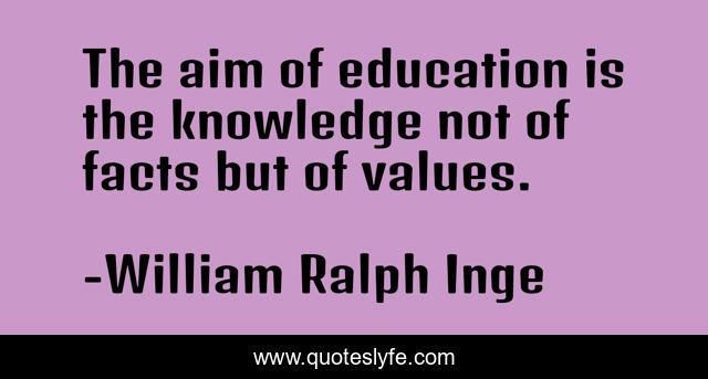 This page presents the quote "The aim of education is the knowledge not of facts but of values.". Author of this quote is William Ralph Inge. This quote is about aim, education, values,.