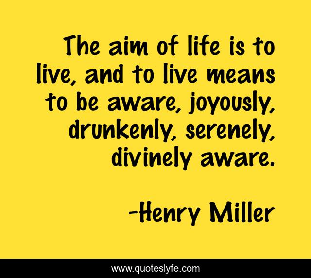 This page presents the quote "The aim of life is to live, and to live means to be aware, joyously, drunkenly, serenely, divinely aware.". Author of this quote is Henry Miller. .