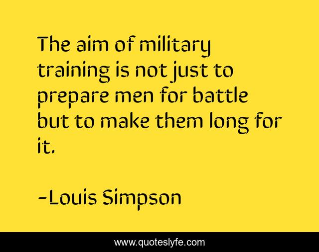 This page presents the quote "The aim of military training is not just to prepare men for battle but to make them long for it.". Author of this quote is Louis Simpson. .