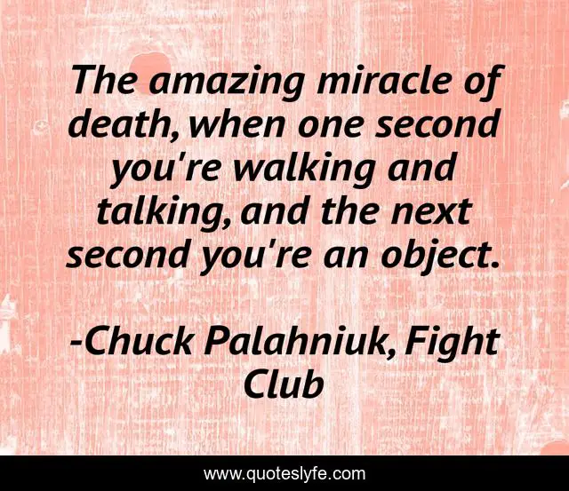 "Chuck Palahniuk, Fight Club Quotes." Quoteslyfe.com, 2025. Sat. 06 Dec. 2025. <https://www.quoteslyfe.com/quote/The-amazing-miracle-of-death-when-one-21663>.