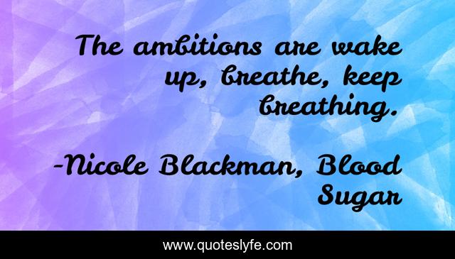 This page presents the quote "The ambitions are wake up, breathe, keep breathing.". Author of this quote is Nicole Blackman, Blood Sugar. .