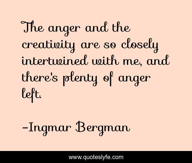 This page presents the quote "The anger and the creativity are so closely intertwined with me, and there's plenty of anger left.". Author of this quote is Ingmar Bergman. This quote is about me, creativity, plenty,.