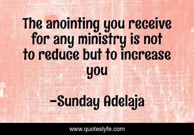 This page presents the quote "The anointing you receive for any ministry is not to reduce but to increase you". Author of this quote is Sunday Adelaja. This quote is about life, calling, purpose, goals, fulfillment,.
