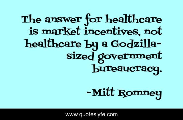 This page presents the quote "The answer for healthcare is market incentives, not healthcare by a Godzilla-sized government bureaucracy.". Author of this quote is Mitt Romney. This quote is about bureaucracy, healthcare,.