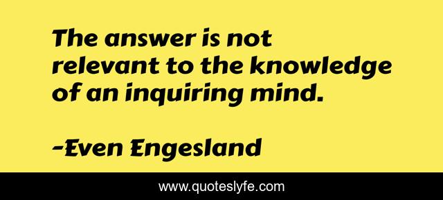 This page presents the quote "The answer is not relevant to the knowledge of an inquiring mind.". Author of this quote is Even Engesland. This quote is about knowledge, thinking, science, different-perspective, inspirational, human-nature, enthusiasm,.