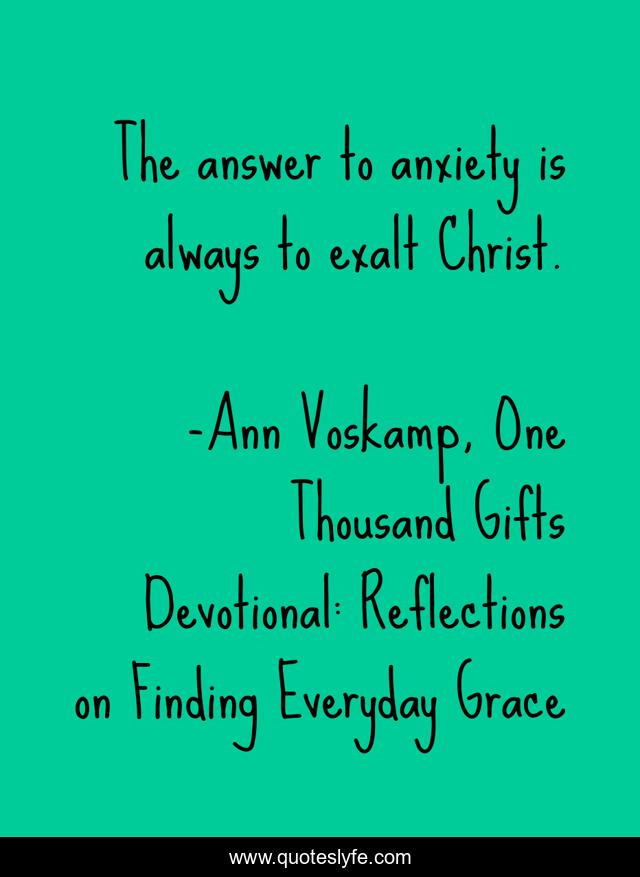 "Ann Voskamp, One Thousand Gifts Devotional: Reflections on Finding Everyday Grace Quotes." Quoteslyfe.com, 2025. Sat. 06 Dec. 2025. <https://www.quoteslyfe.com/quote/The-answer-to-anxiety-is-always-to-134536>.