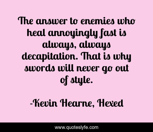 "Kevin Hearne, Hexed Quotes." Quoteslyfe.com, 2025. Fri. 05 Dec. 2025. <https://www.quoteslyfe.com/quote/The-answer-to-enemies-who-heal-annoyingly-251581>.