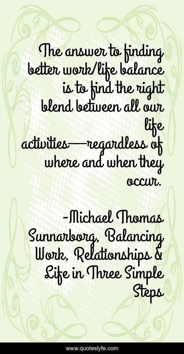 "Michael Thomas Sunnarborg, Balancing Work, Relationships & Life in Three Simple Steps Quotes." Quoteslyfe.com, 2025. Fri. 05 Dec. 2025. <https://www.quoteslyfe.com/quote/The-answer-to-finding-better-work-life-174766>.