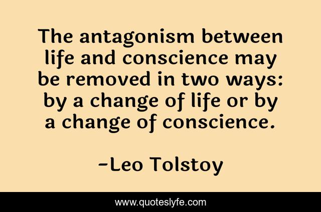 This page presents the quote "The antagonism between life and conscience may be removed in two ways: by a change of life or by a change of conscience.". Author of this quote is Leo Tolstoy. This quote is about conscience, life, conviction, motivation, guilt, change,.