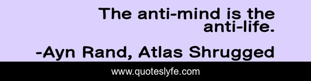 "Ayn Rand, Atlas Shrugged Quotes." Quoteslyfe.com, 2025. Tue. 09 Dec. 2025. <https://www.quoteslyfe.com/quote/The-anti-mind-is-the-anti-life-87326>.