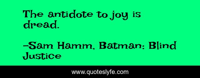 "Sam Hamm, Batman: Blind Justice Quotes." Quoteslyfe.com, 2025. Sun. 07 Dec. 2025. <https://www.quoteslyfe.com/quote/The-antidote-to-joy-is-dread-97401>.