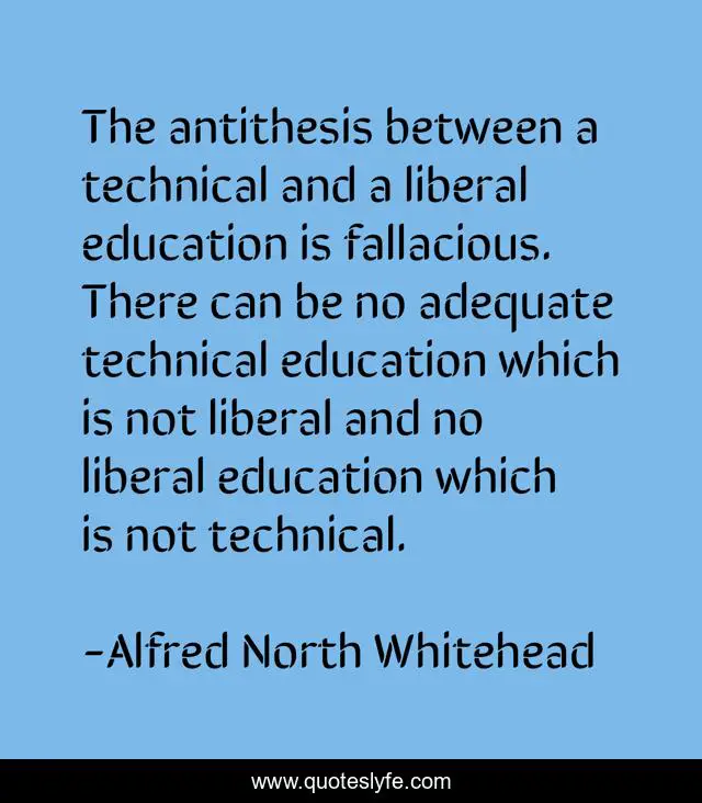 This page presents the quote "The antithesis between a technical and a liberal education is fallacious. There can be no adequate technical education which is not liberal and no liberal education which is not technical.". Author of this quote is Alfred North Whitehead. .