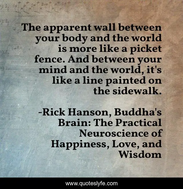 "Rick Hanson, Buddha's Brain: The Practical Neuroscience of Happiness, Love, and Wisdom Quotes." Quoteslyfe.com, 2025. Sun. 07 Dec. 2025. <https://www.quoteslyfe.com/quote/The-apparent-wall-between-your-body-and-117688>.