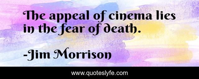 This page presents the quote "The appeal of cinema lies in the fear of death.". Author of this quote is Jim Morrison. This quote is about lies, fear, cinema,.