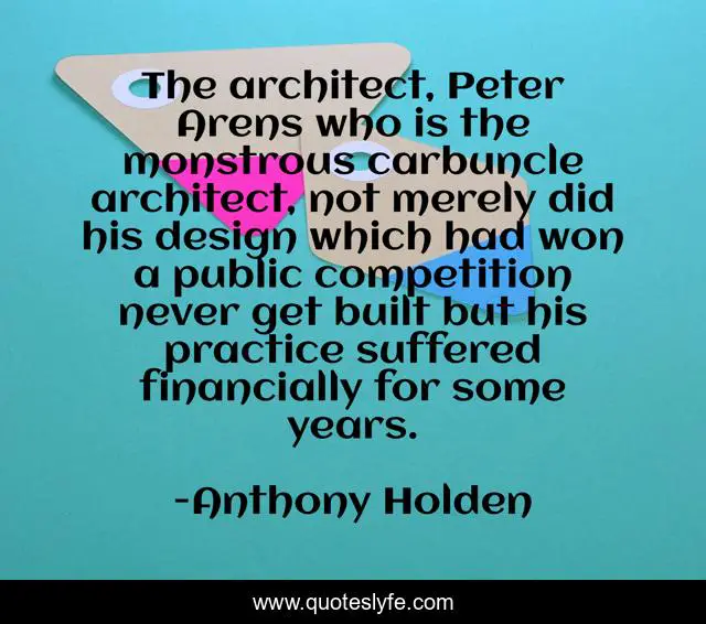 This page presents the quote "The architect, Peter Arens who is the monstrous carbuncle architect, not merely did his design which had won a public competition never get built but his practice suffered financially for some years.". Author of this quote is Anthony Holden. This quote is about practice, competition, years,.